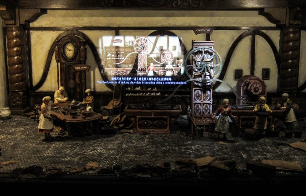 Admission to the theme park is free, and you can spend as long as you want with a cuppa in hand. But the main attraction, of course, is the factory itself. One ticket gets you access to two collectibles museum (one chocolate related and the other on toys) a walk through a series of dioramas depicting the history of chocolate and last but not least, the viewing gallery.