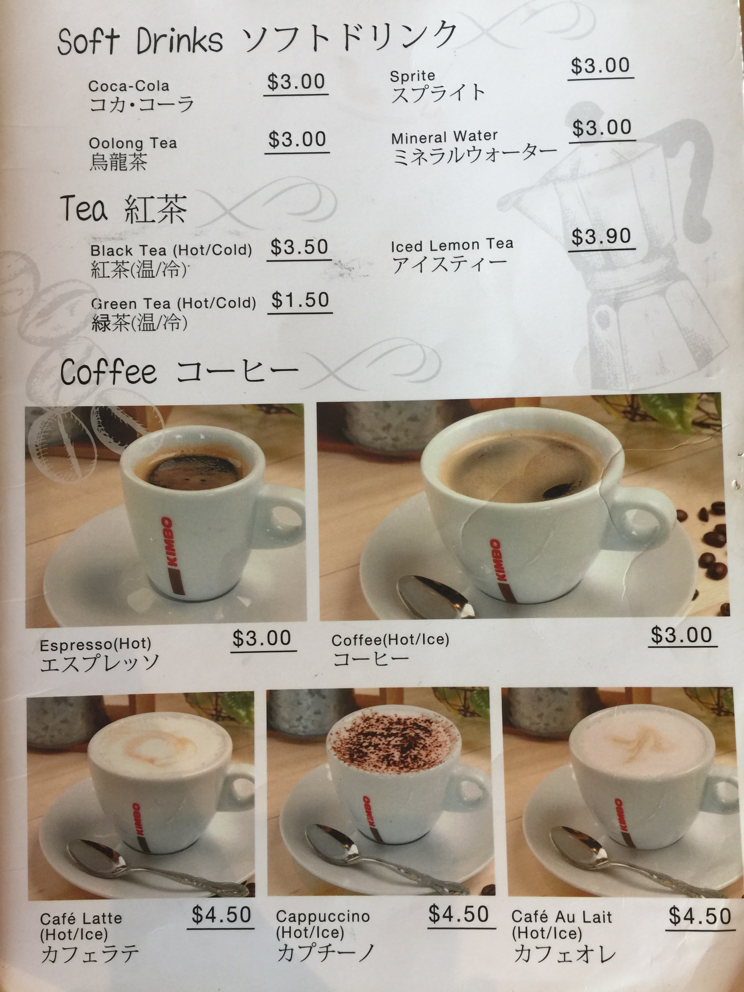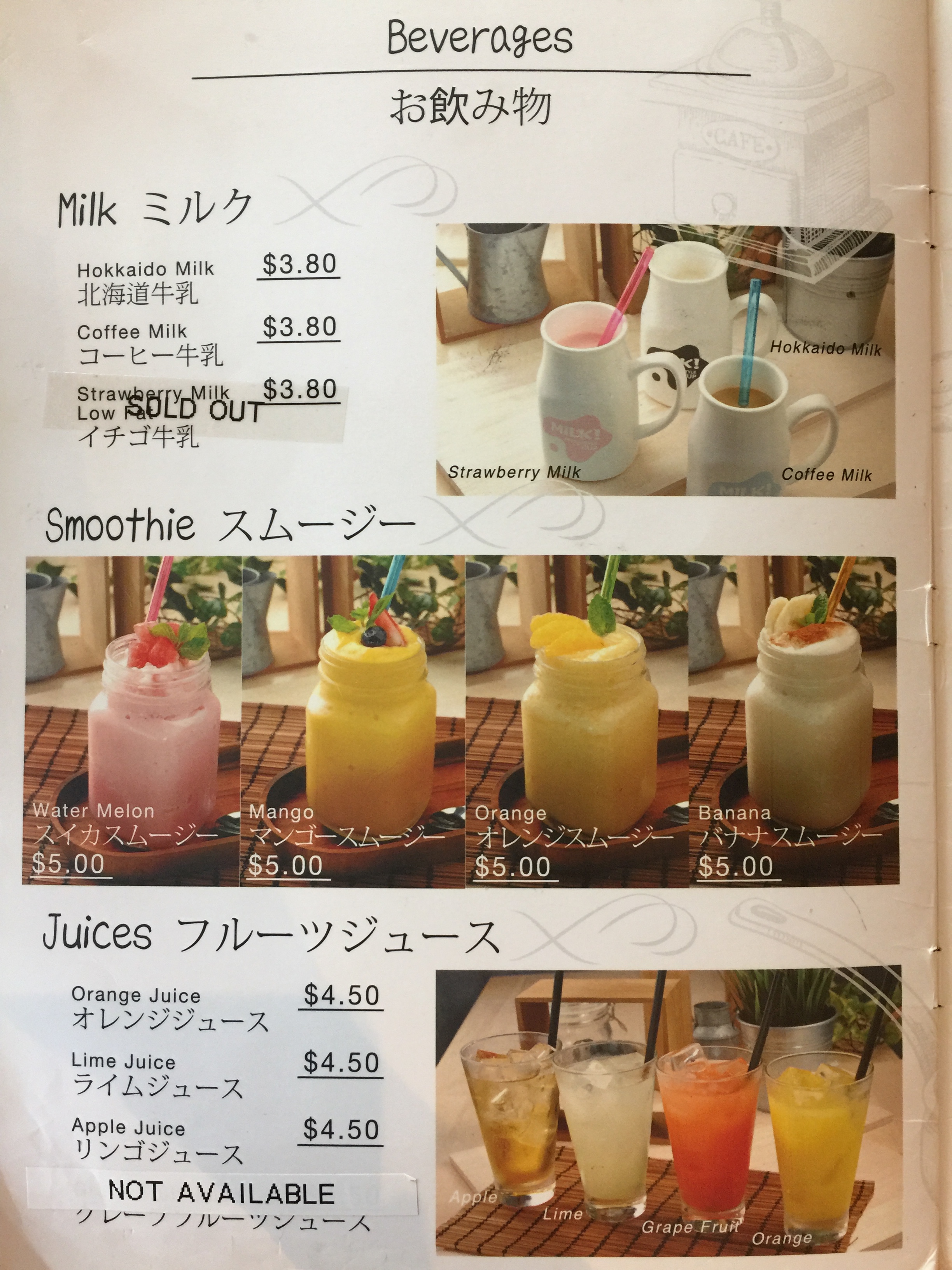 Drinks menu: