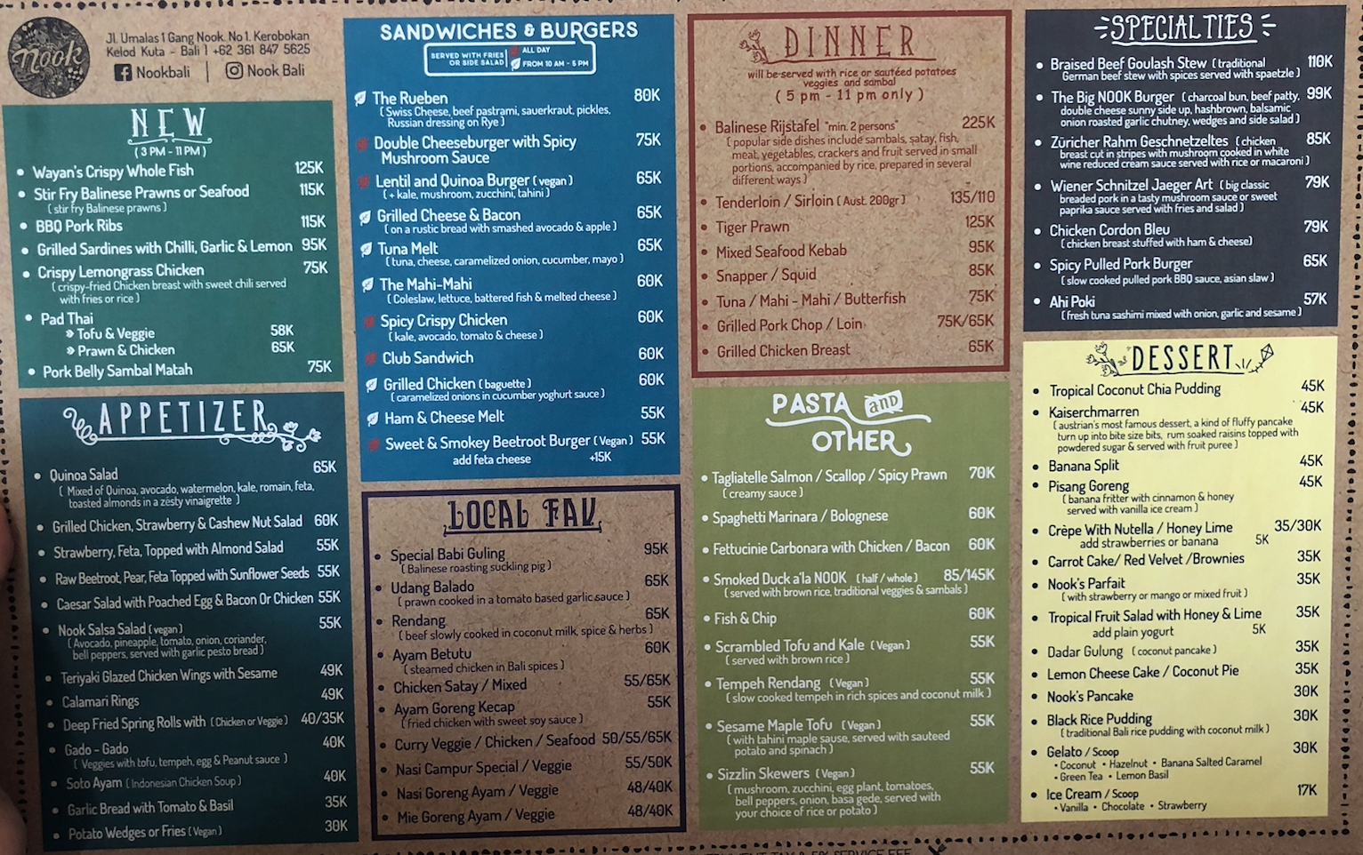 NOOK’s expansive menu consists of the usual suspects – breakfast items, coffee, tea and juice based concoctions for the typical cafe goer, and a selection of local dishes like nasi campur and babi guling for those craving something a little closer to home. Beer and wine are also available.