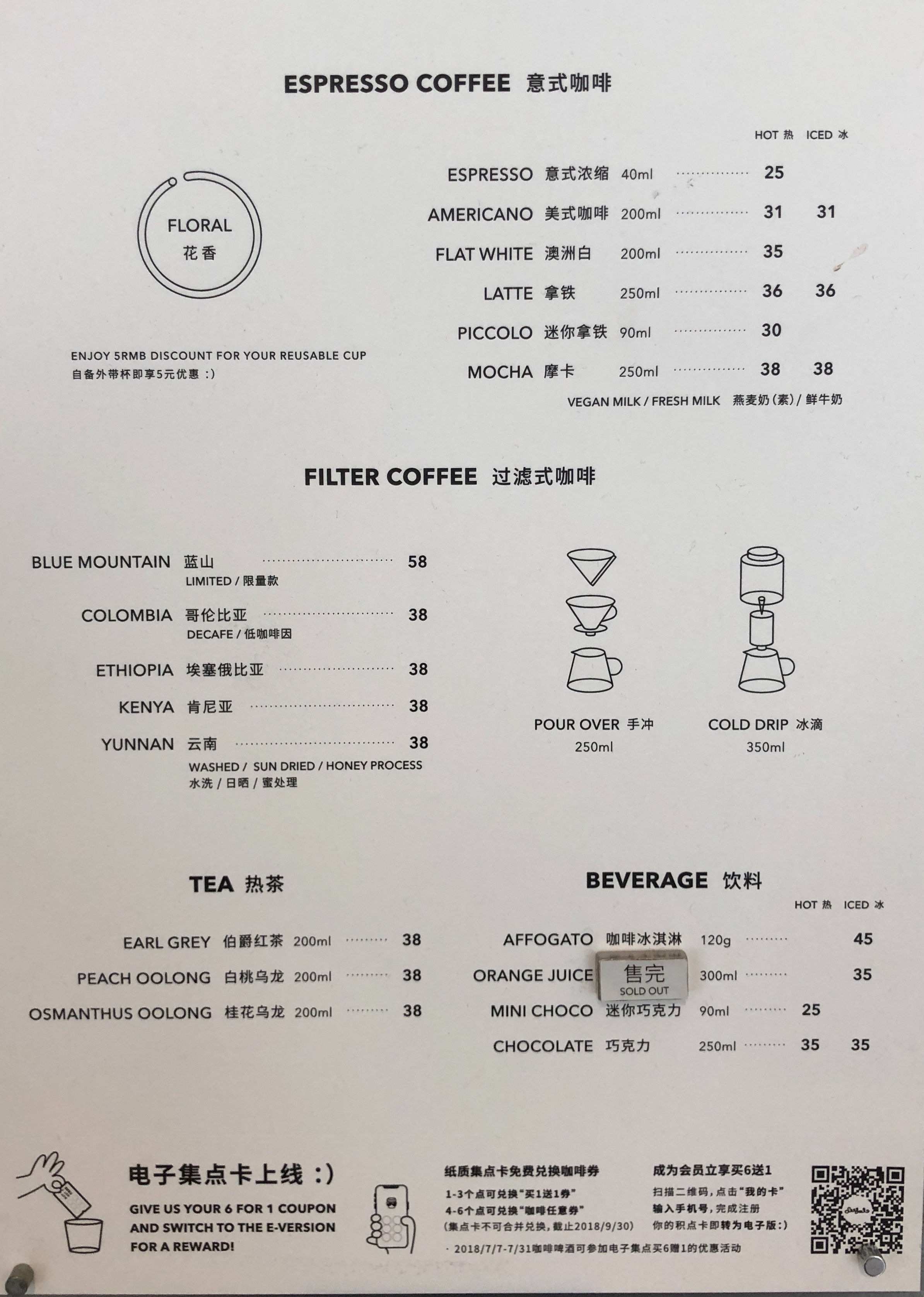 Seesaw has a pretty dynamic range of filter coffees, from Blue Mountain to Kenya. Tea cravings can also be satiated with a choice of three types of tea, although it’s clear the customers are here for the former. Best of all, you get a discount of 5 RMB if you use a reusable cup! We got two Iced Lattes (36 RMB), the perfect antidote to the Shanghai summer heat.