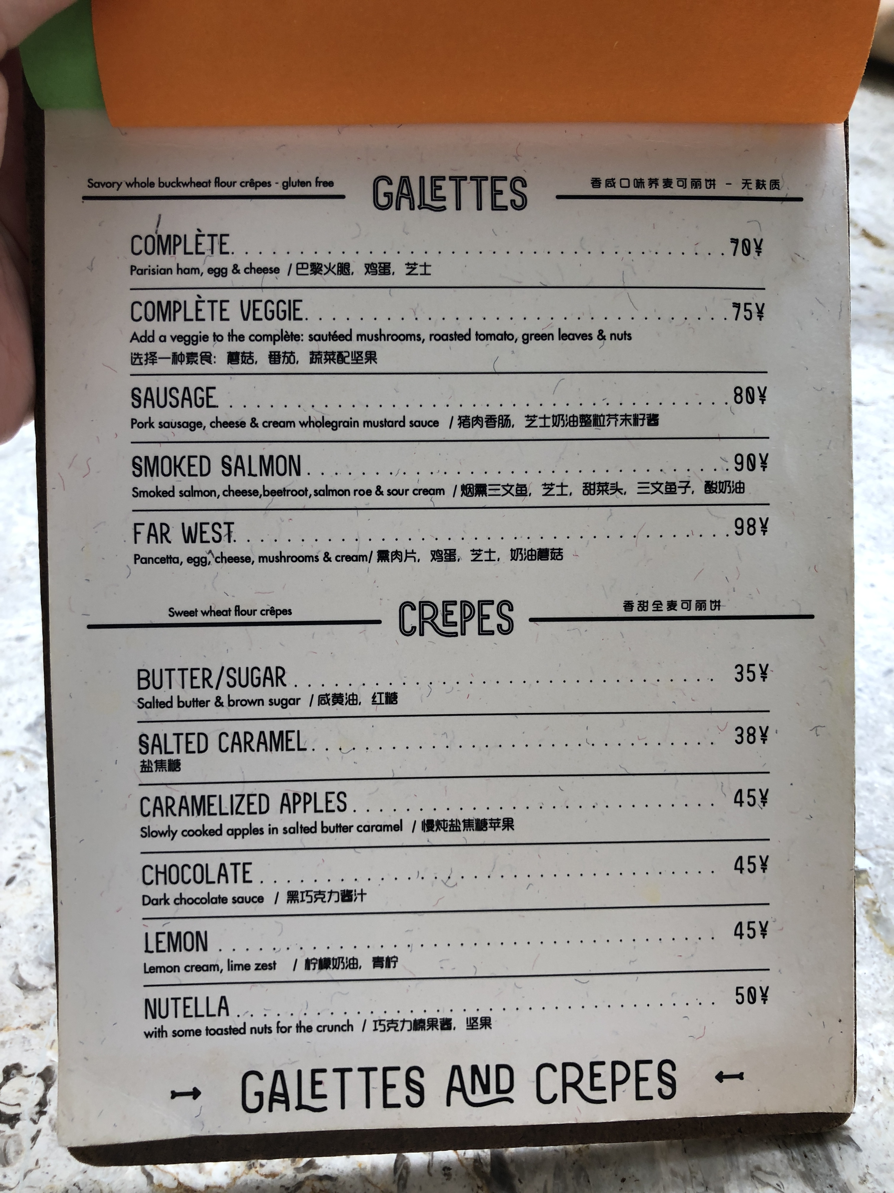 While we were pretty stuffed by the end of our two galettes, there was no way we were leaving RAC without dessert. Though plain looking, the Salted Caramel (38 RMB) turned out to be one of the highlights of our meal! It’s also devoid of filling, so pretty manageable for a single diner if you’re on the hunt for a sweet treat.