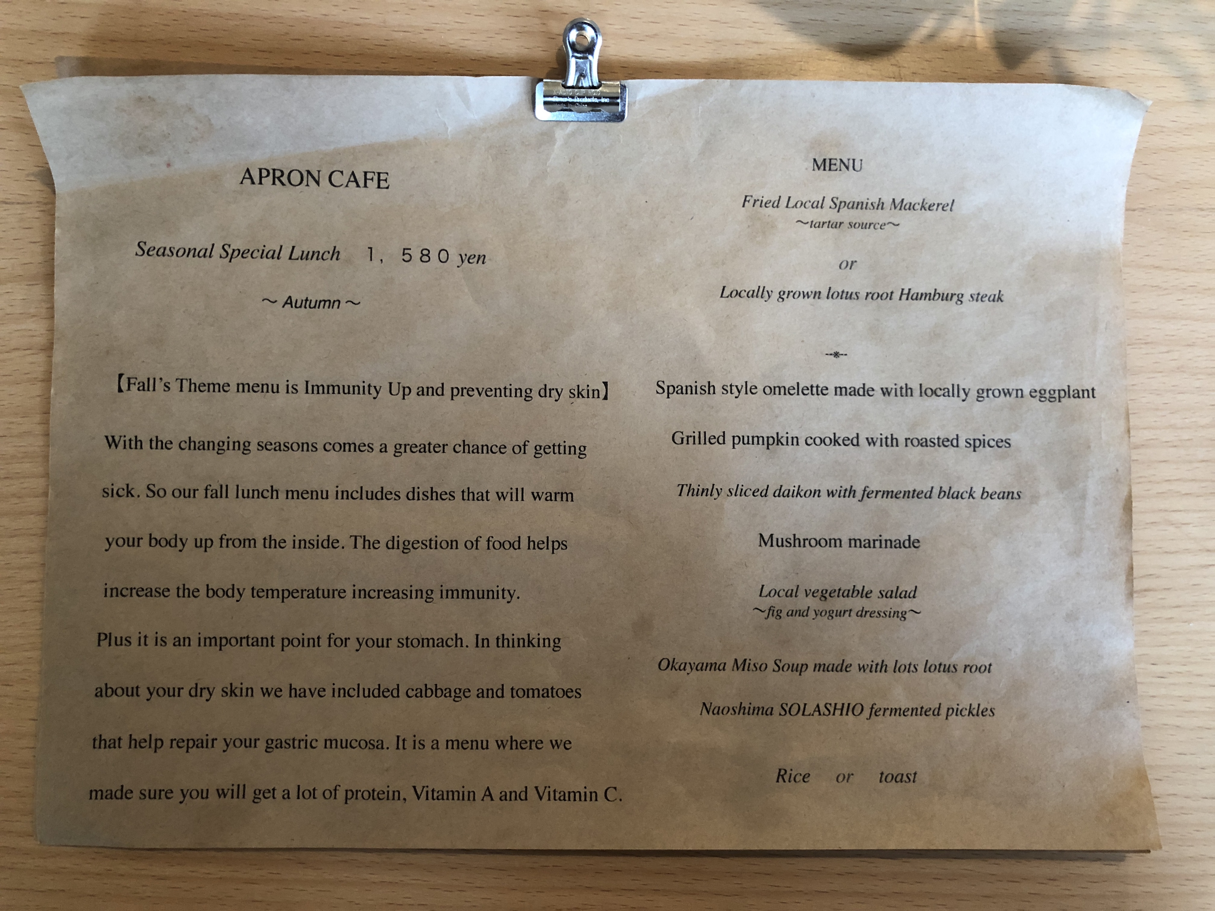 Menu: Regular/ Seasonal (Autumn 2018)